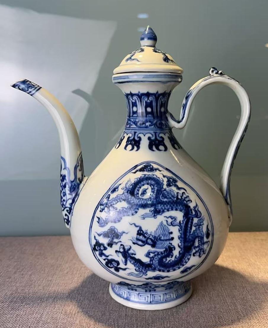 明宣德青花开窗云龙纹执壶
