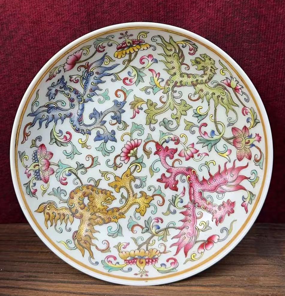 名称:清光绪粉彩凤穿花纹赏盘