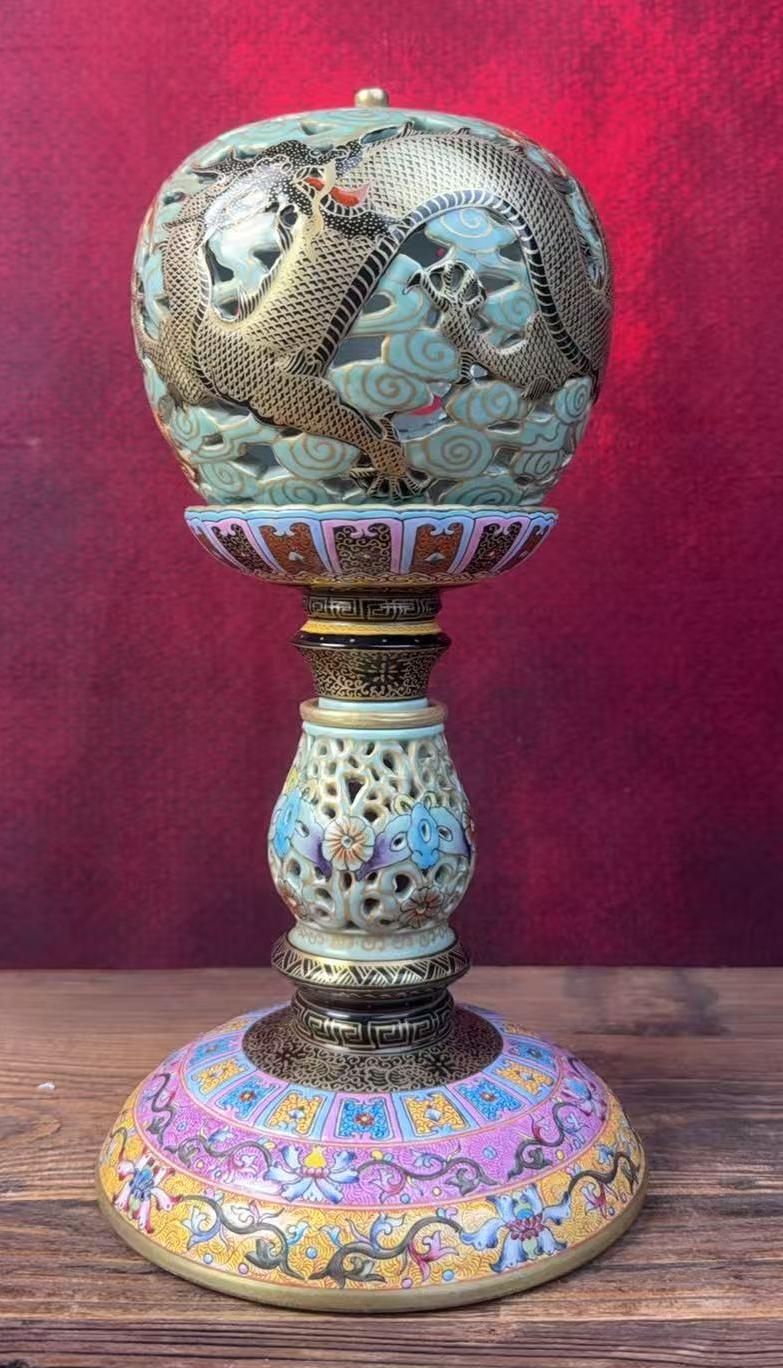 名称:清乾隆珐琅彩描金镂雕云龙纹冠架
