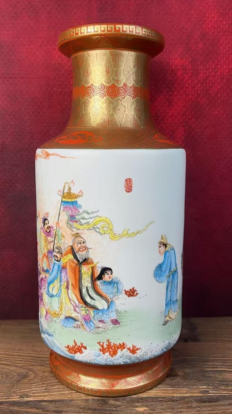 清乾隆粉彩矾红描金通景人物纹棒槌瓶