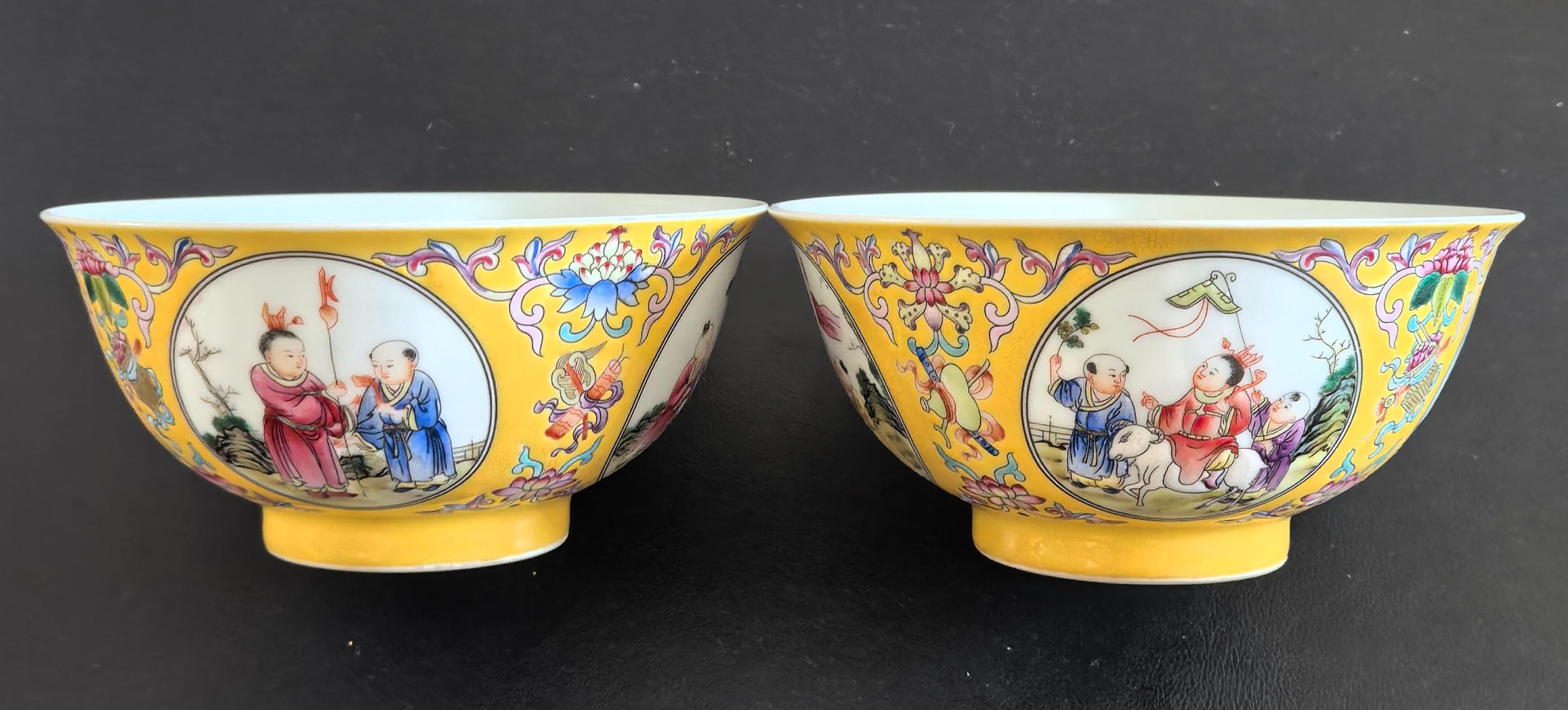 清康熙御制黄地珐琅彩开窗婴戏纹碗