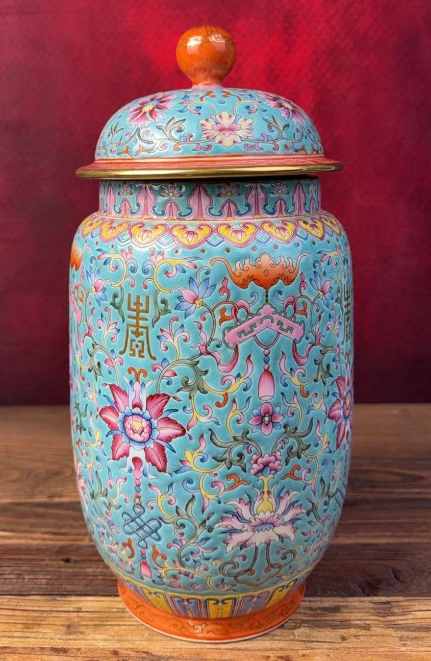 名称:清乾隆珐琅彩描金花间寿纹壮罐