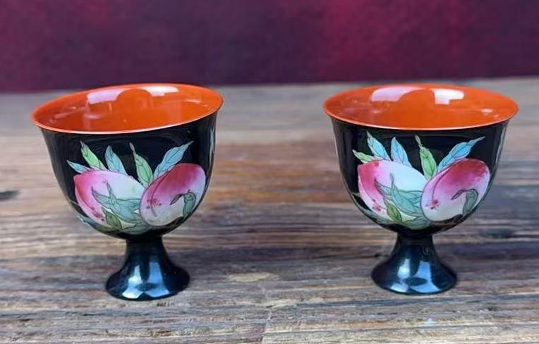 名称:清雍正墨地珐琅彩瑞果纹高足杯