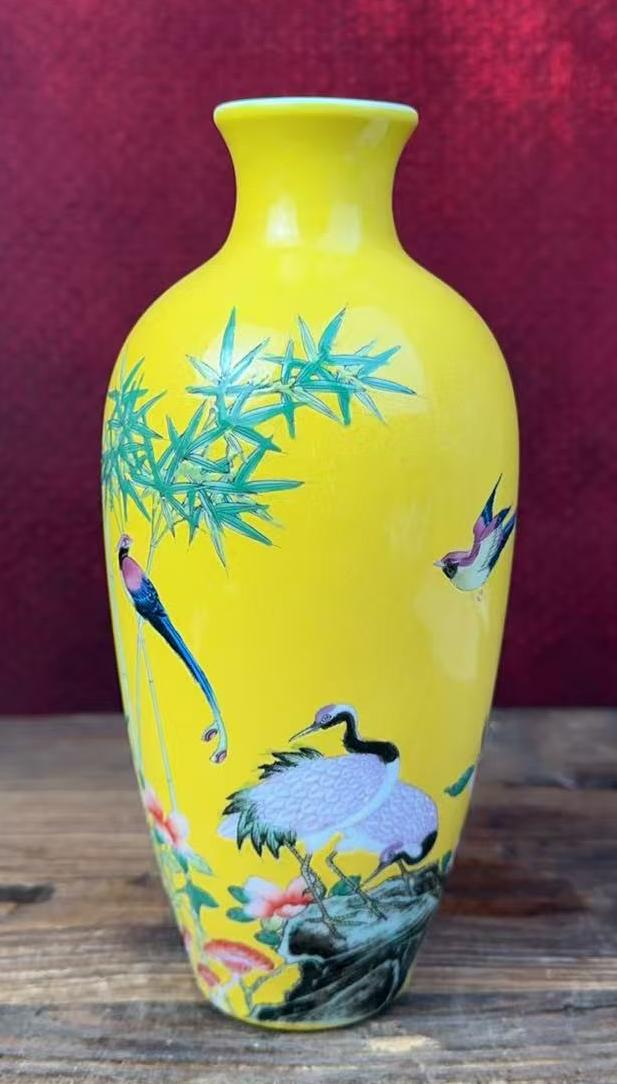 名称:清雍正黄地珐琅彩花鸟纹瓶