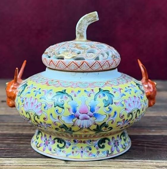 清乾隆珐琅彩花卉纹兽耳熏炉