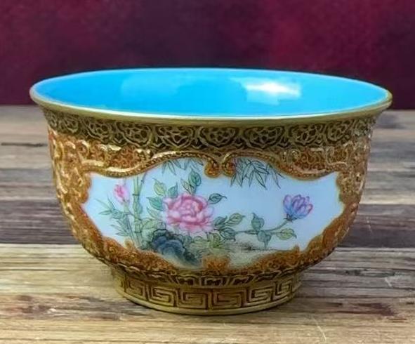名称:清乾隆珐琅彩矾红描金开窗花卉纹杯