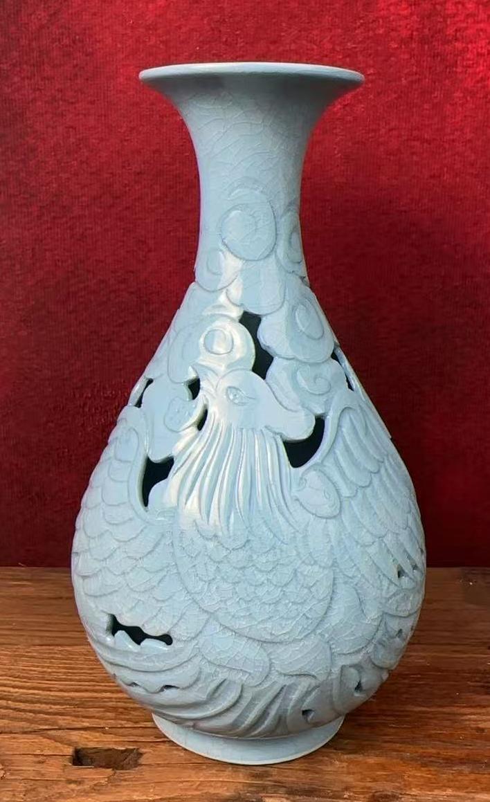 柴窑镂雕玉壶春瓶