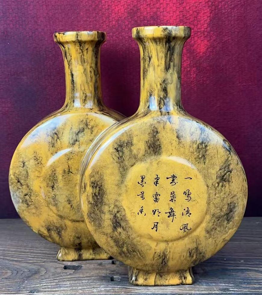 名称:清乾隆仿石纹釉诗纹扁瓶