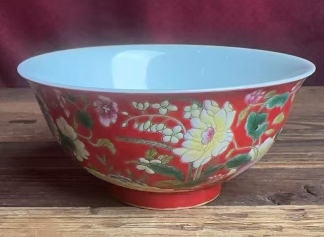 名称:清康熙珊瑚红釉珐琅彩花卉纹碗