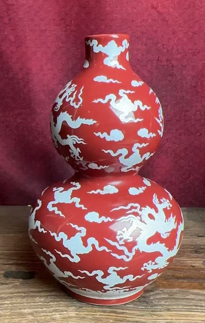名称:明成化红釉留白暗刻龙纹葫芦瓶