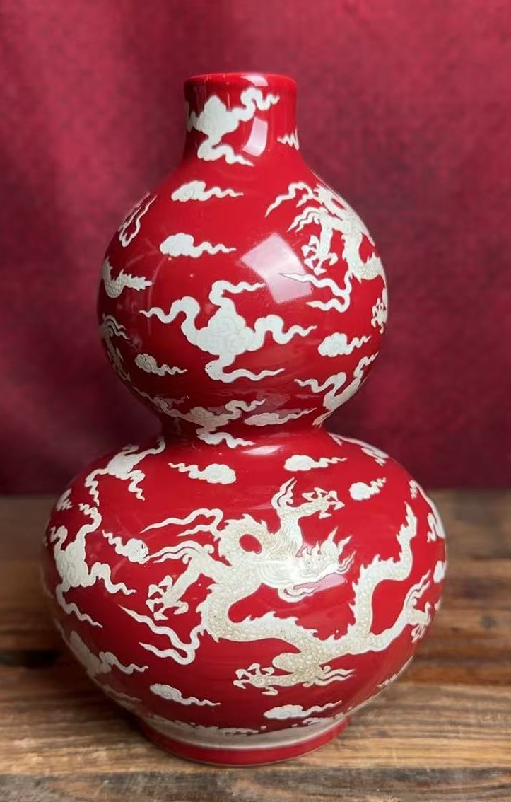 名称:明成化红釉留白暗刻龙纹葫芦瓶