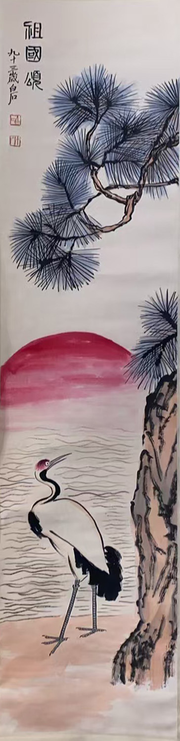 名称:齐白石·松鹤旭日图