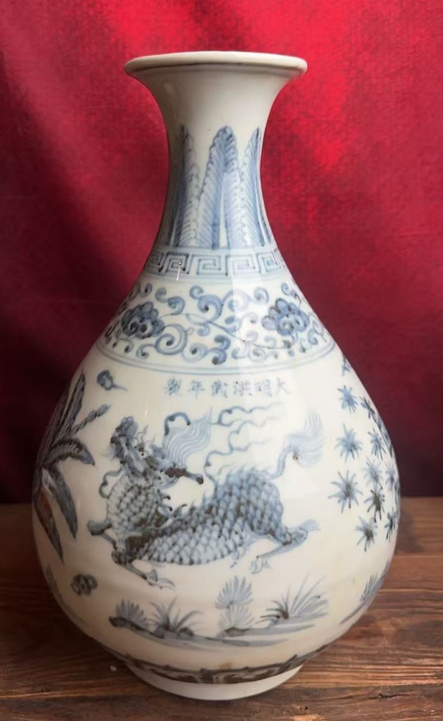 名称:明洪武青花瑞兽纹玉壶春瓶