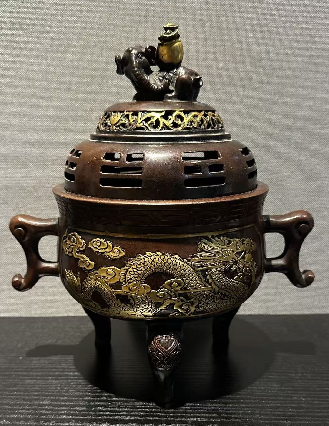 明·铜鎏金鼎式炉