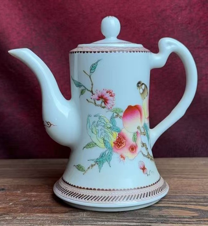 名称:清雍正粉彩花鸟纹执壶