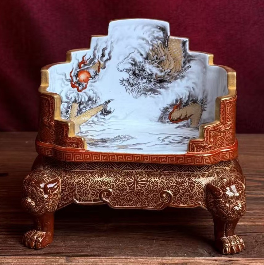 名称:清乾隆矾红描金墨彩龙纹摆件