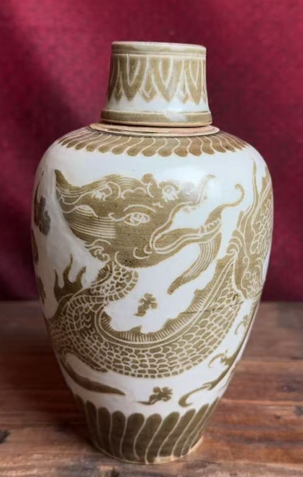 名称:定窑酱釉龙纹梅瓶