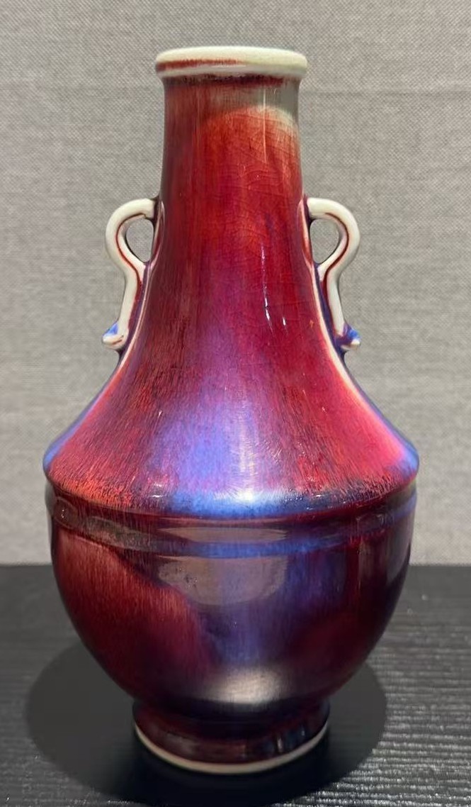 名称:清乾隆钧红釉双耳瓶