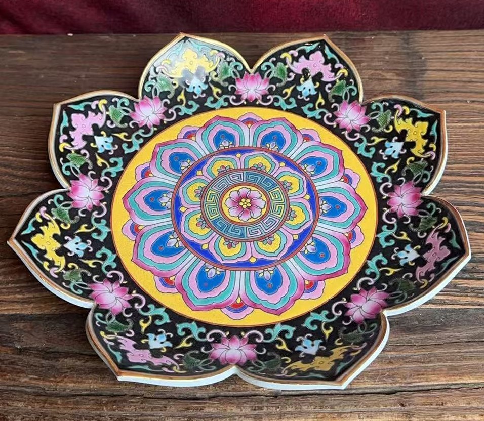 名称:清雍正珐琅彩祝寿莲花花口盘