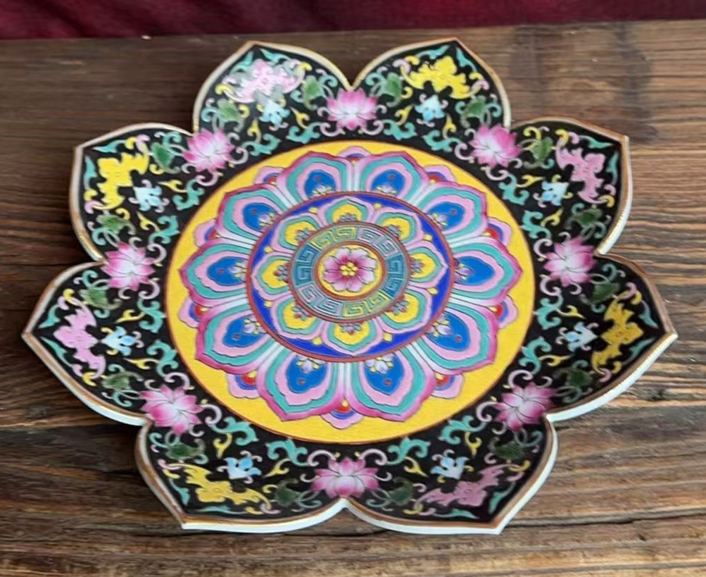 清雍正珐琅彩祝寿莲花花口盘