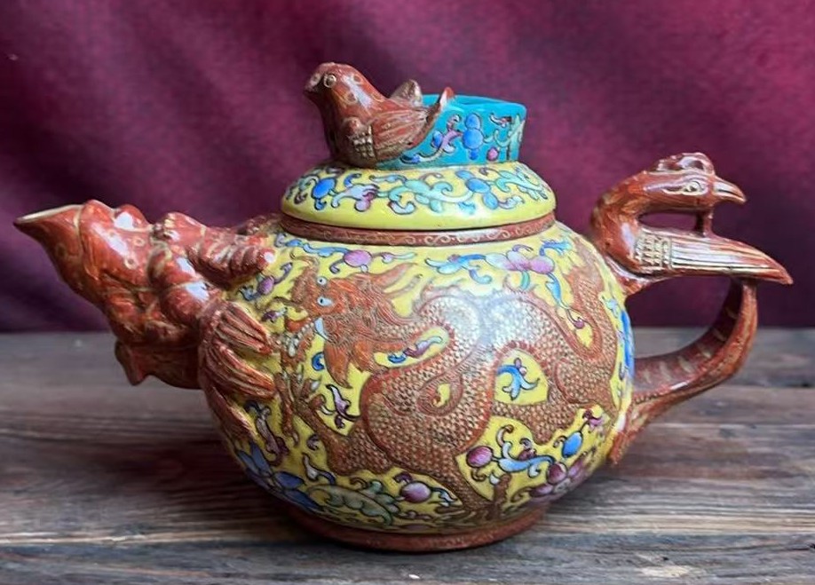 清乾隆御制珐琅彩穿花龙纹紫砂壶