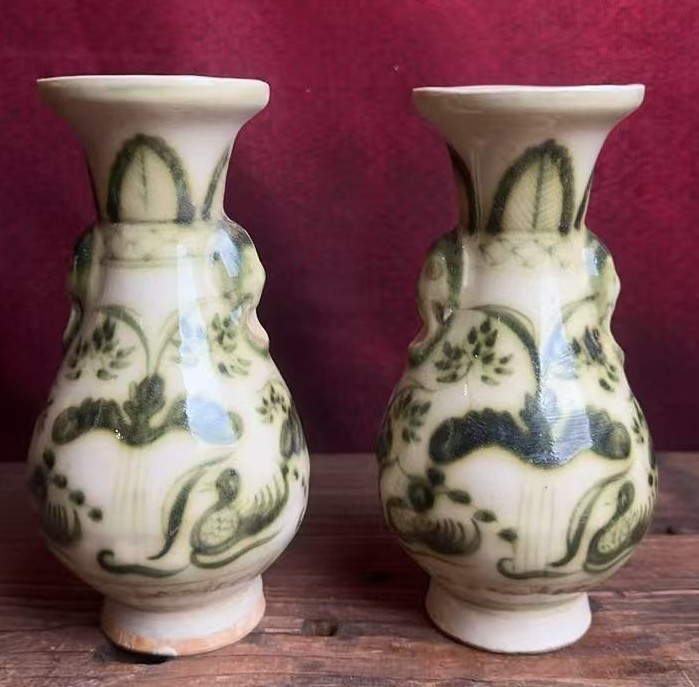 名称:元青花莲池鸳鸯纹双耳瓶