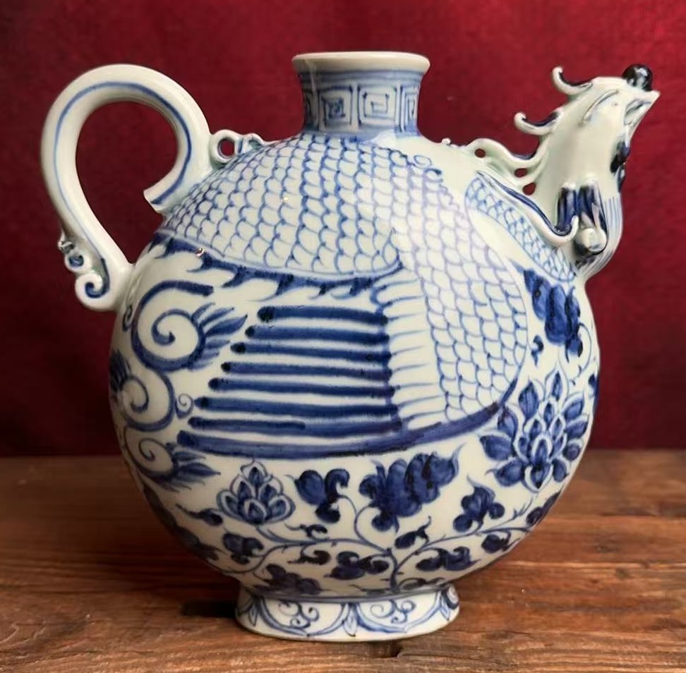 元青花凤首扁壶