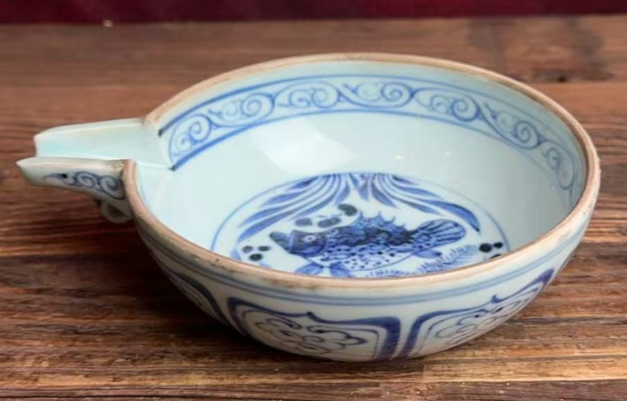 名称:元青花鱼藻纹匜