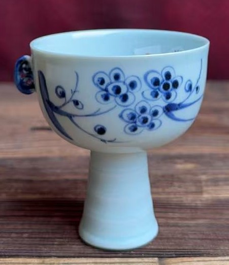 名称:元青花花卉纹高足转把杯