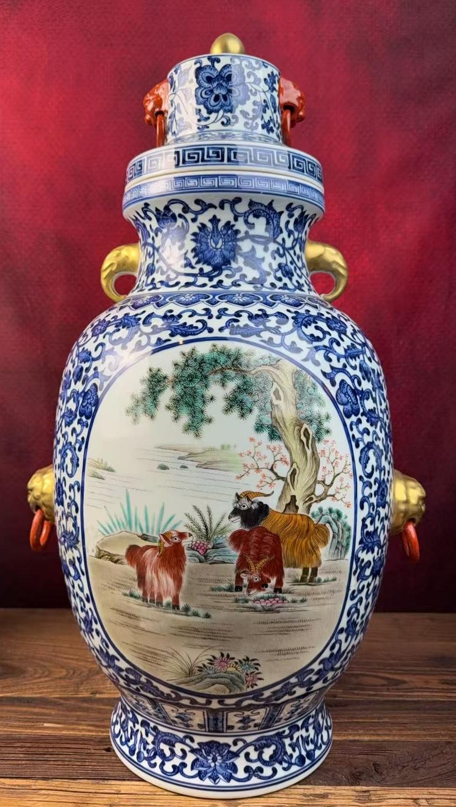 清乾隆青花珐琅彩描金开窗动物纹盖罐