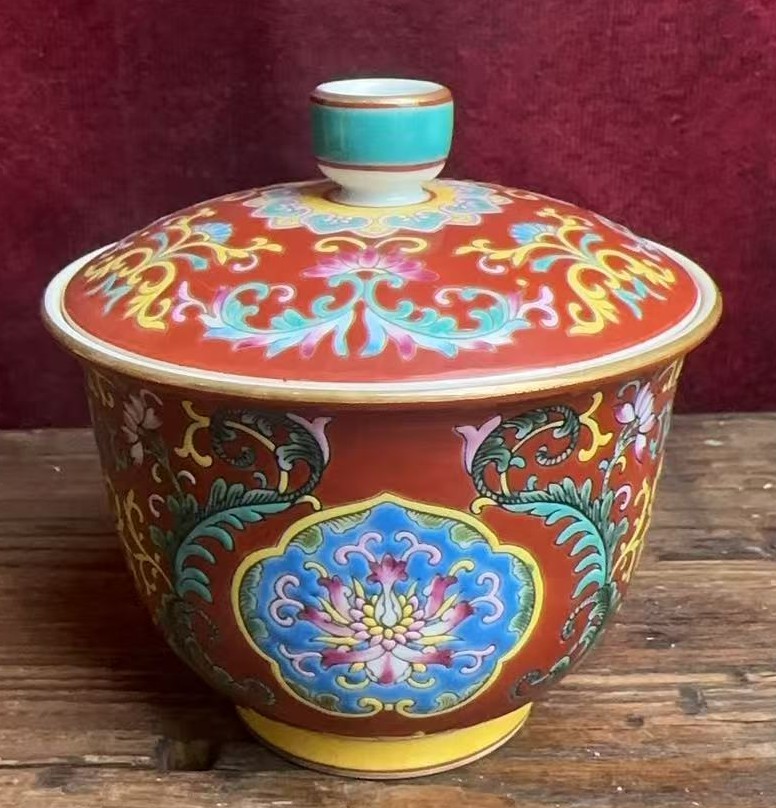 名称:清雍正珊瑚红地珐琅彩花卉纹盖碗