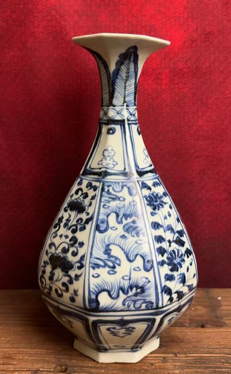 名称:元青花开窗花卉纹八方玉壶春瓶