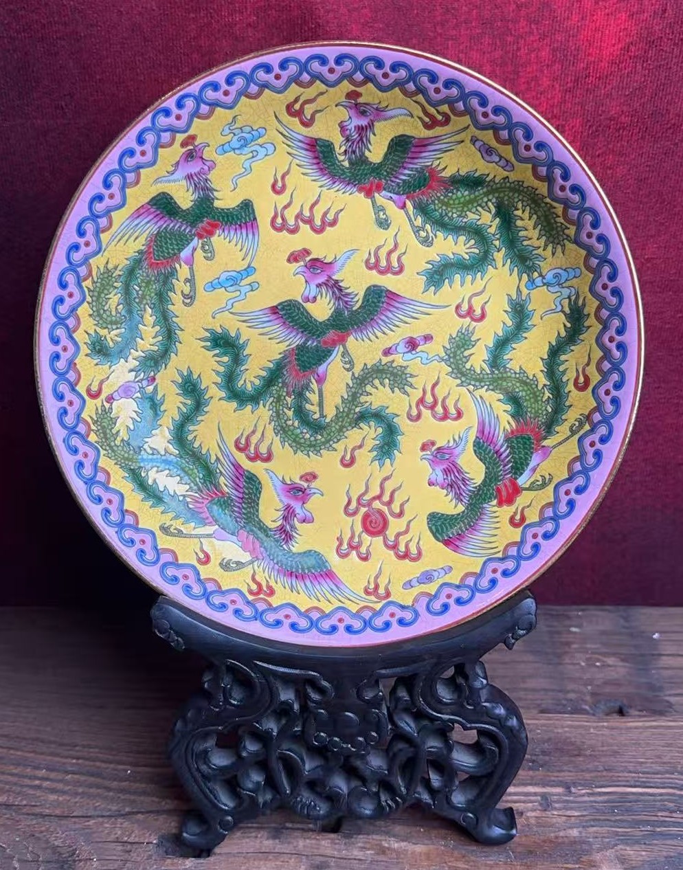 名称:清雍正黄地珐琅彩云凤纹赏盘