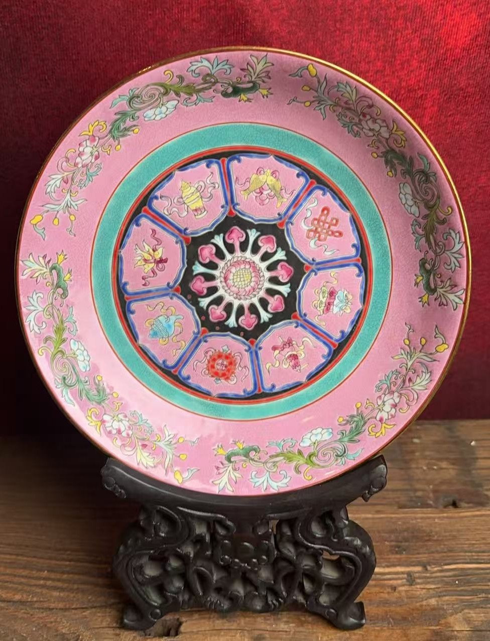 清雍正胭脂水釉粉彩八宝纹赏盘