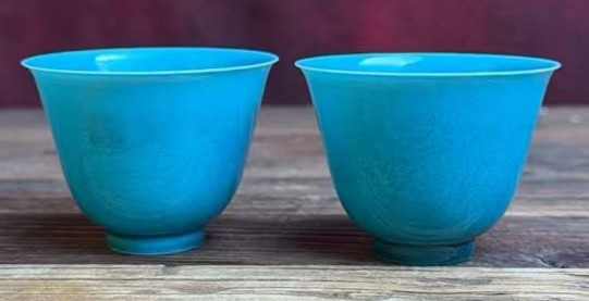 明成化孔雀蓝釉暗刻龙纹杯