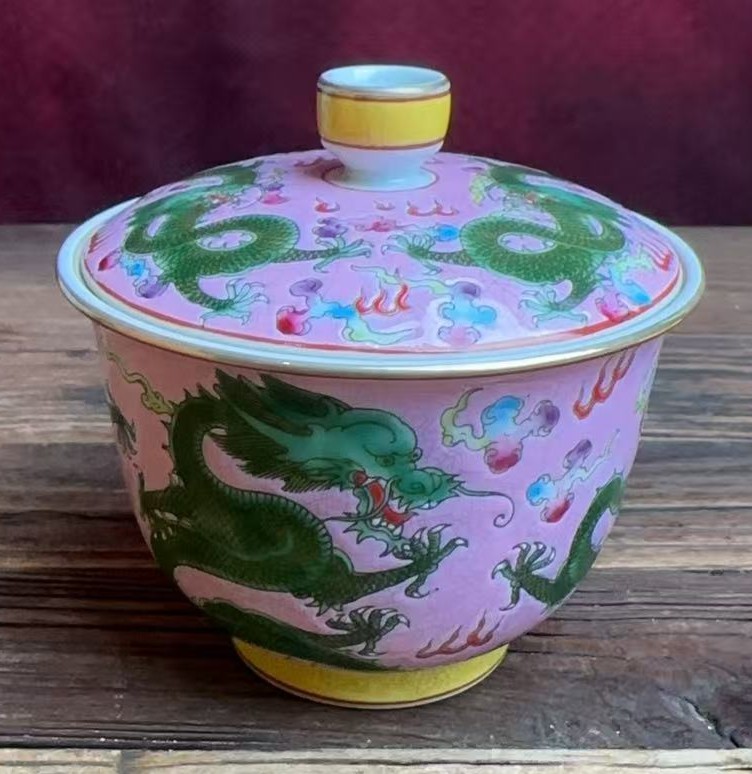名称:清雍正胭脂紫釉珐琅彩龙纹盖碗
