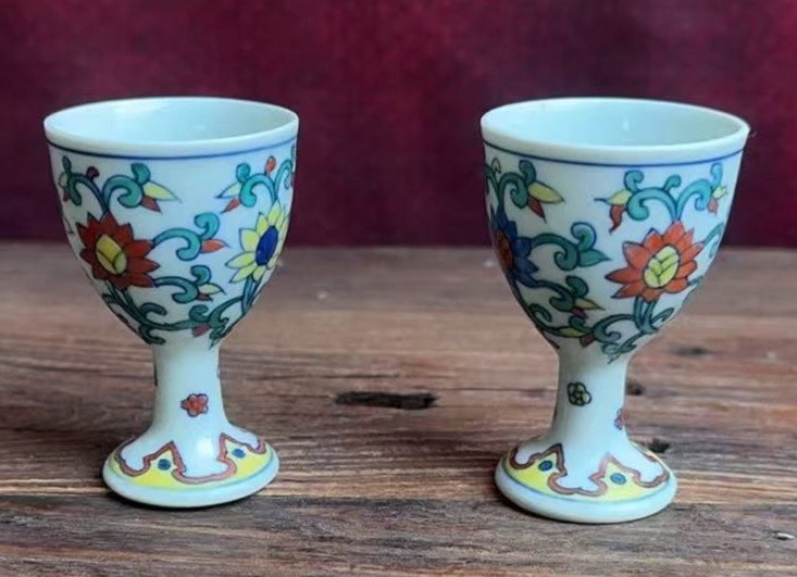 明成化斗彩花卉纹高足杯