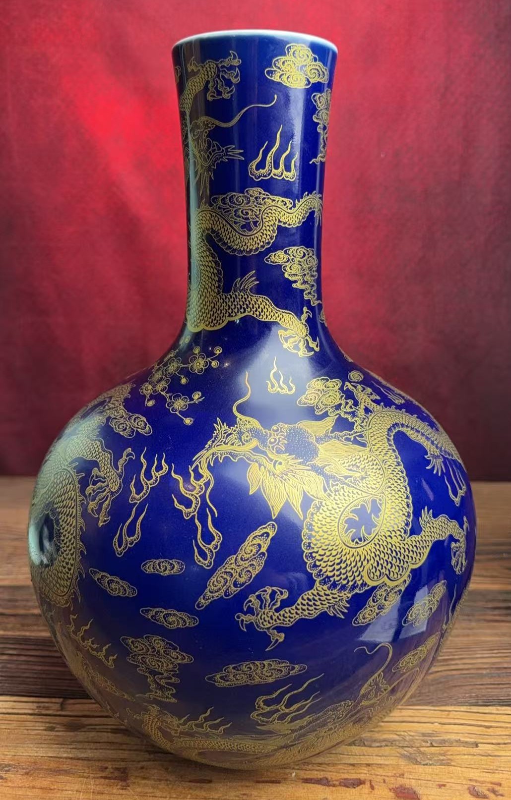 名称:清乾隆霁蓝釉描金云龙纹天球瓶