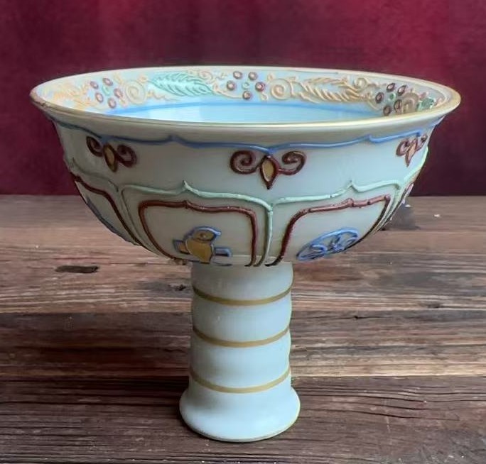 元沥粉戗金花卉纹高足碗