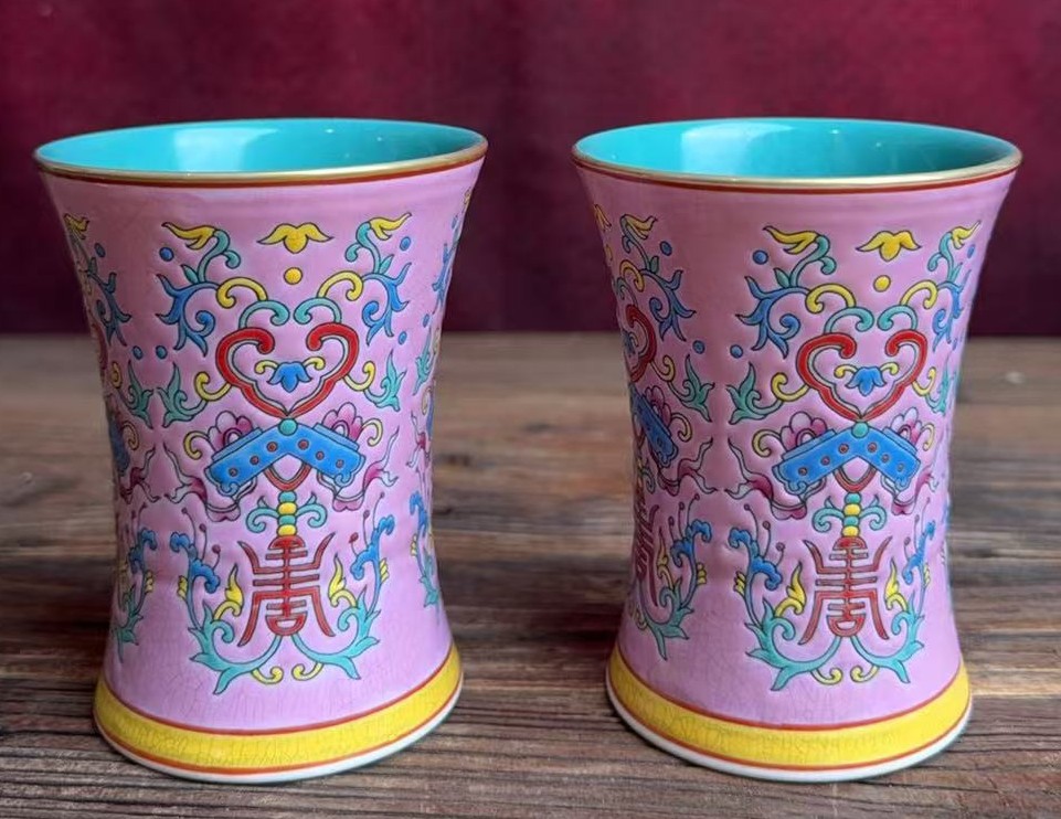 名称:清雍正胭脂红釉珐琅彩花间寿纹花觚