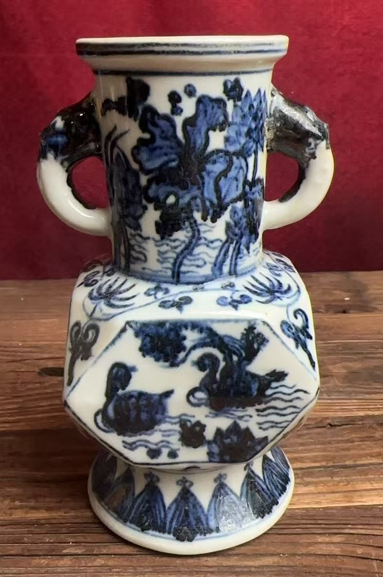 名称:明宣德青花莲池鸳鸯纹四方倭角尊