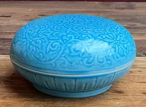 名称:清光绪蓝釉暗刻花卉纹盖盒