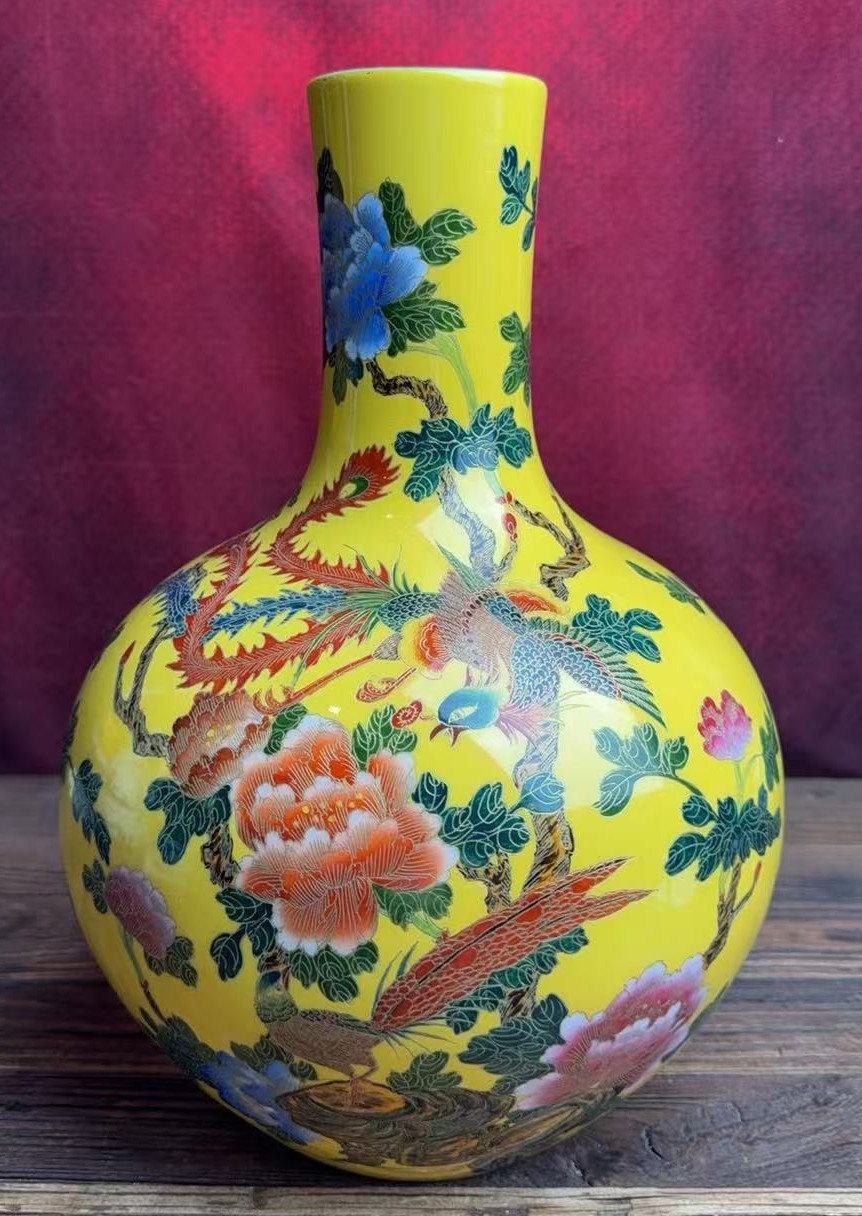 清乾隆掐丝珐琅凤穿牡丹纹天球瓶