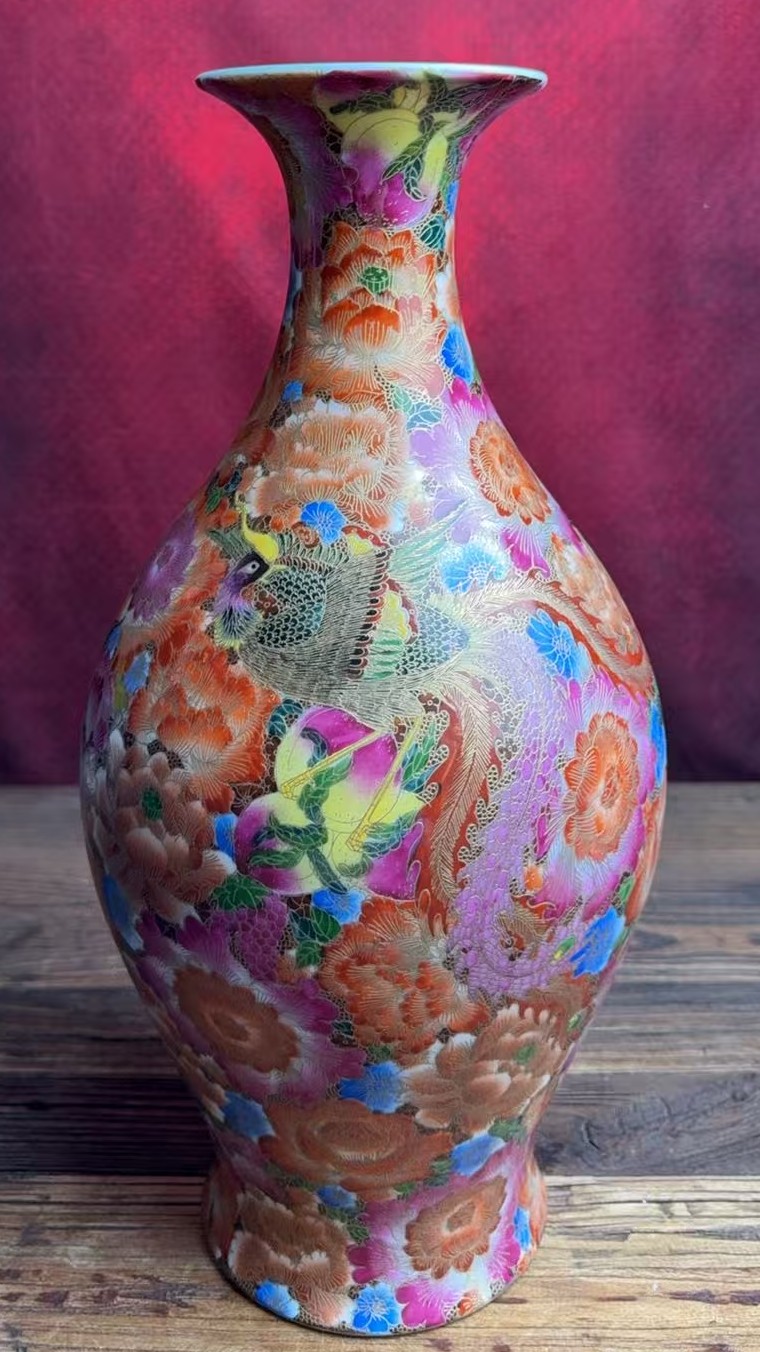 名称:清乾隆掐丝珐琅凤穿牡丹纹橄榄瓶