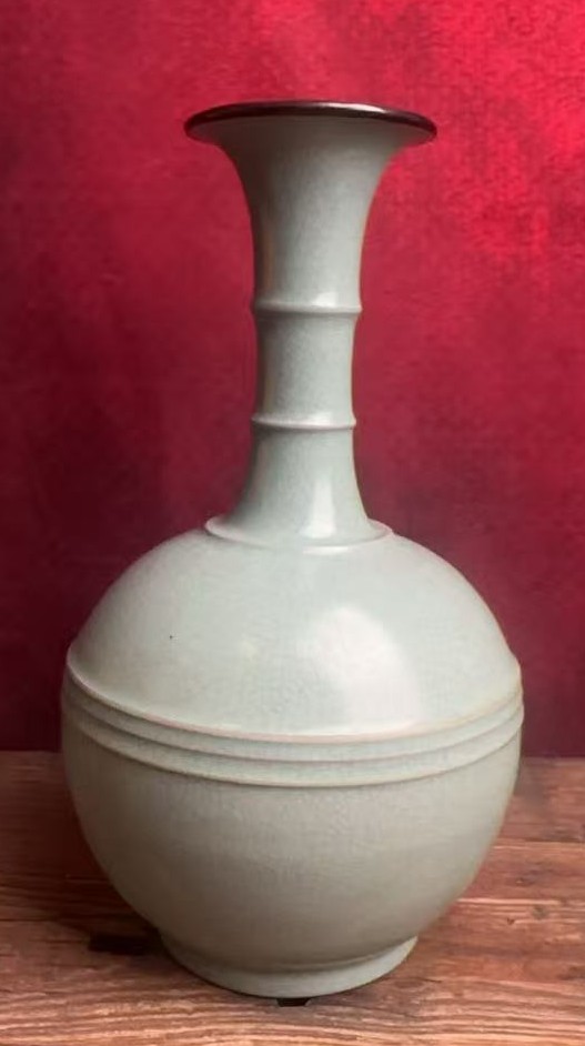 名称:汝窑弦纹长颈瓶