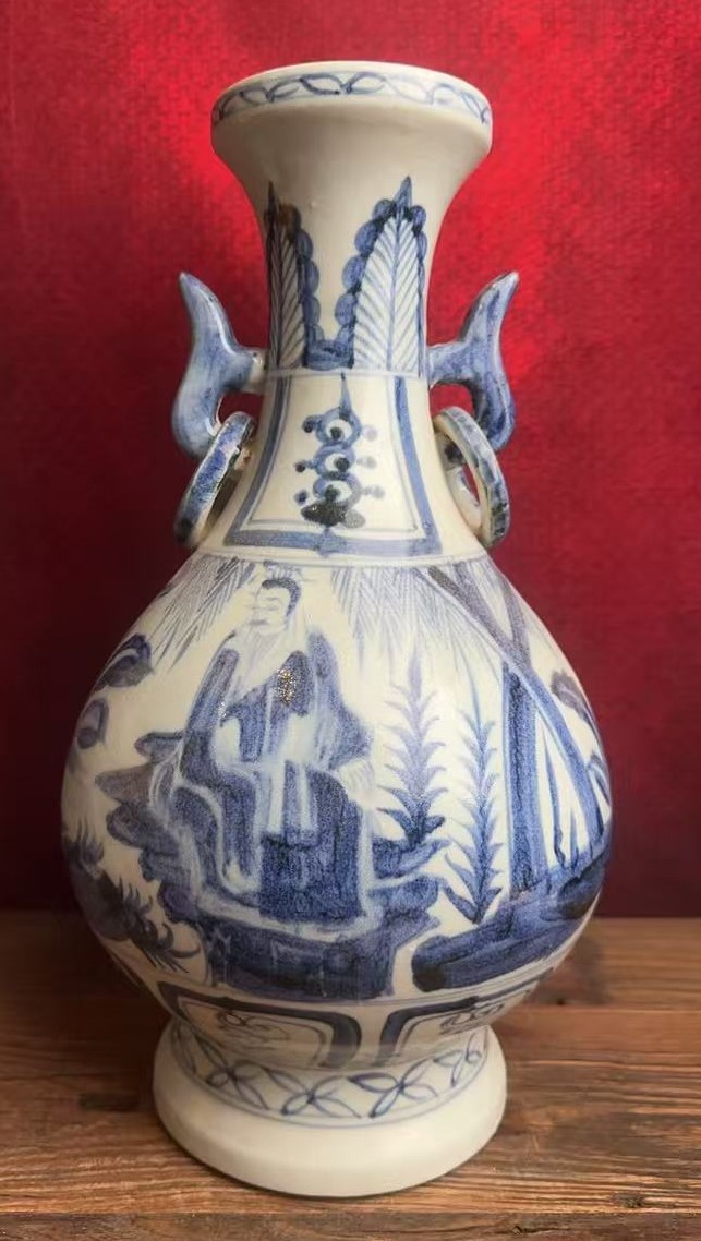 元青花人物故事纹双耳长颈瓶