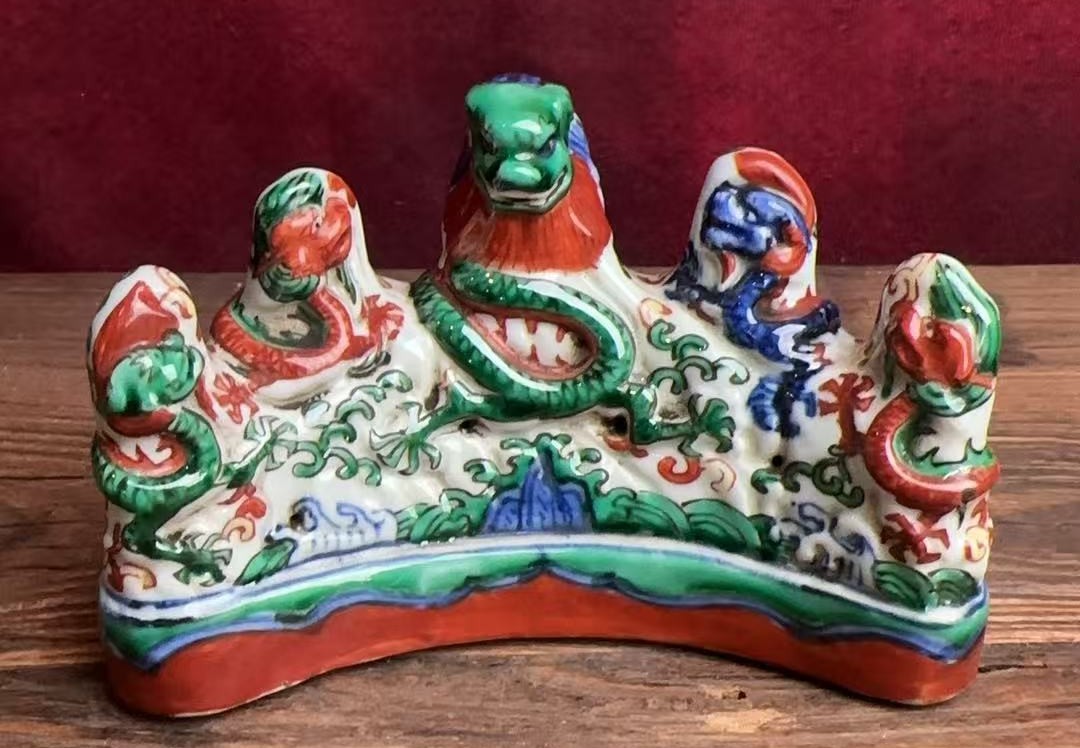 明万历青花五彩龙纹笔山