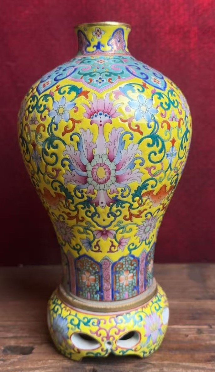 名称:清乾隆黄地珐琅彩缠枝牡丹纹转体瓶