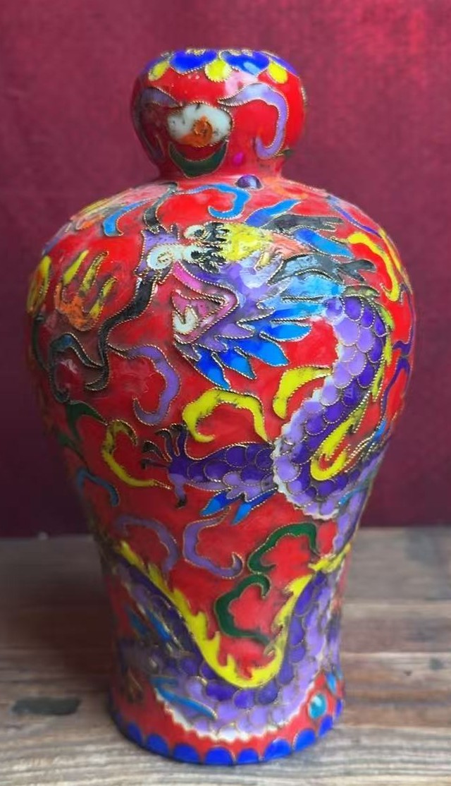 清乾隆掐丝珐琅龙纹蒜头瓶