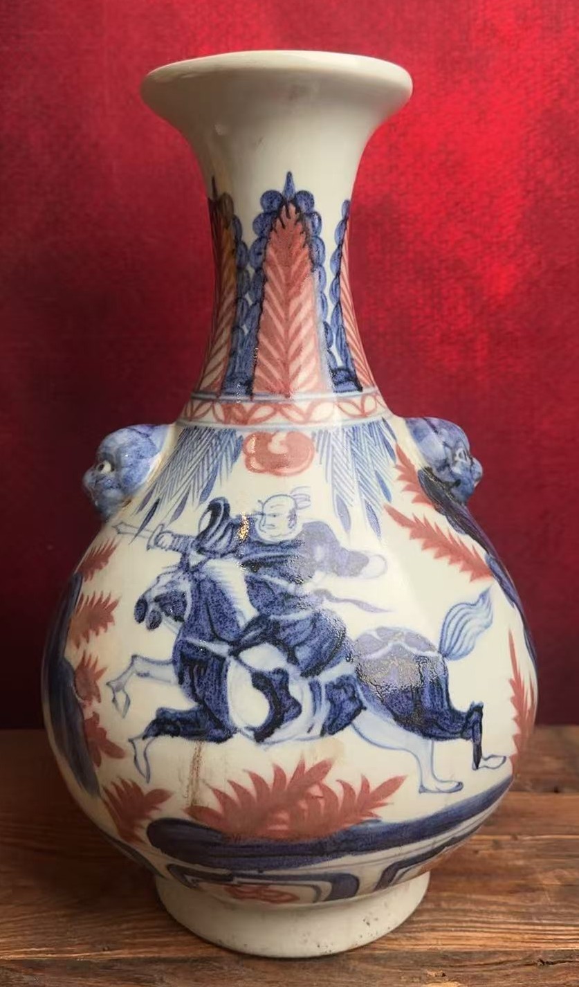 名称:元青花釉里红人物纹双耳玉壶春瓶